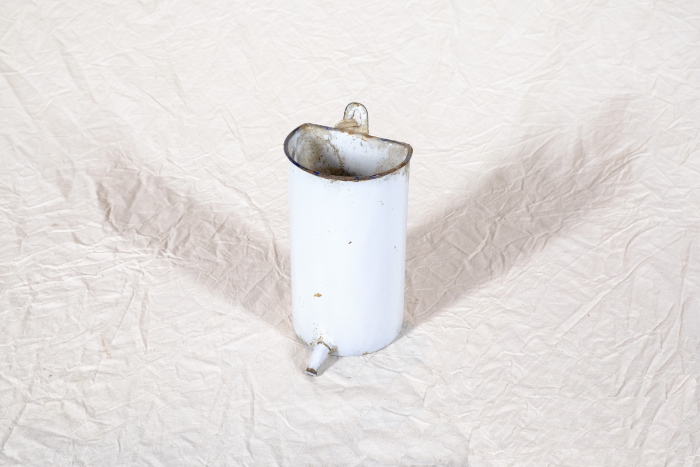 Der Irrigator, auch als Klistier bezeichnet, diente medizinischen Spülungen, wie beispielsweise Einläufen und Darmspülungen. Es fehlt ein Gummischlauch, welcher an dem Auslaufröhrchen angebracht wurde. Denkbar ist die Verwendung bei Tieren, die unter Koliken oder Verschlüssen litten.